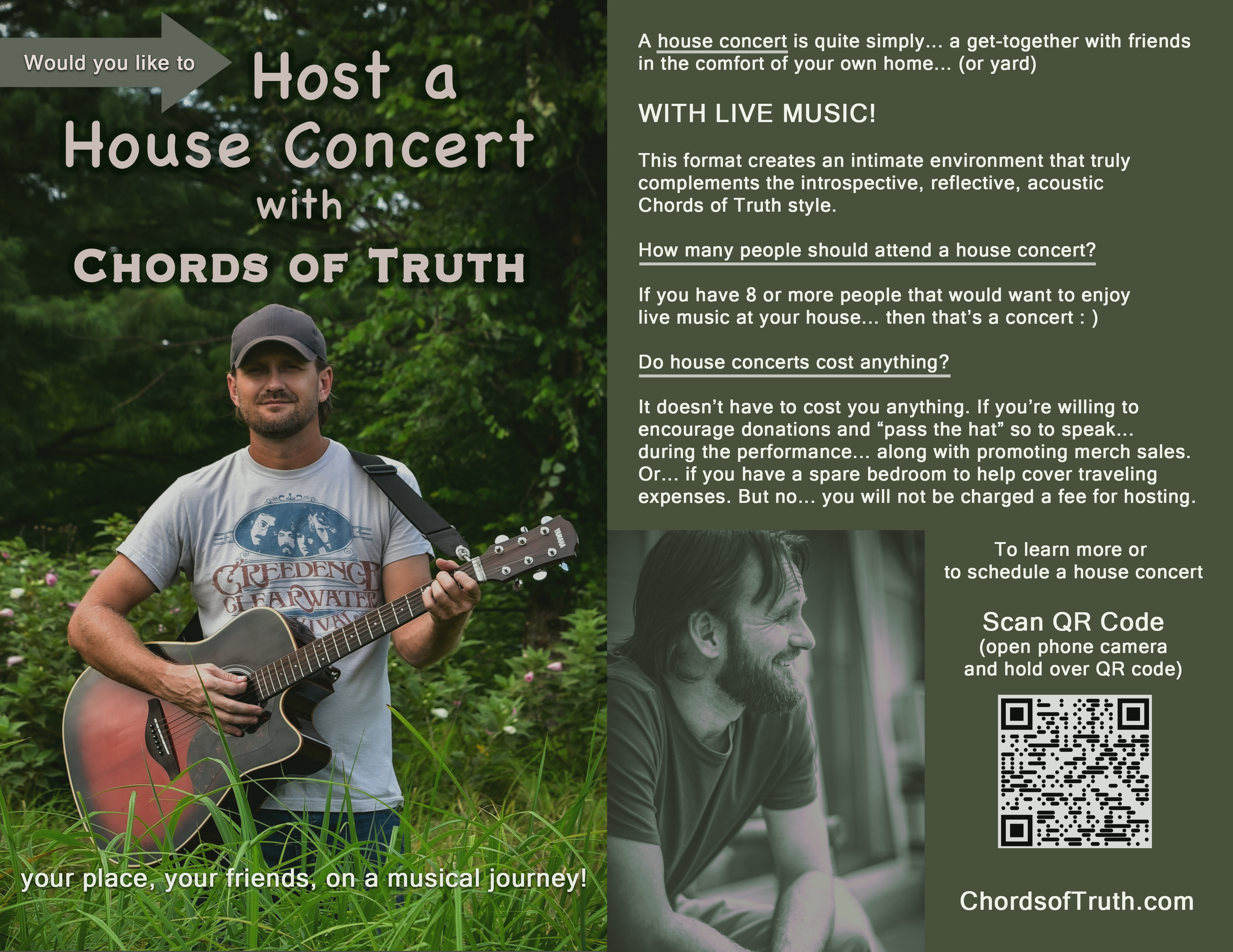 Experience an intimate acoustic performance in the comfort of your own home. House concerts are a unique way to connect with music and friends.