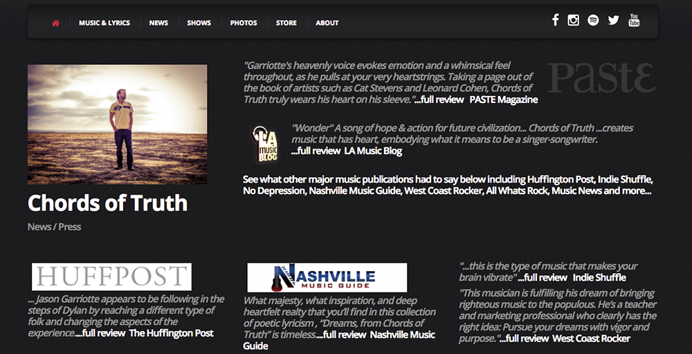 "Jason’s ability to use simple, straightforward everyday language to communicate complex ideas is remarkable and rare. Chords of Truth is a wonderful storyteller and his underlying themes are universal." ...full review Jamsphere Music Magazine